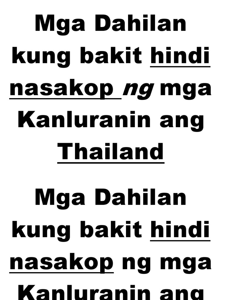 Bakit Hindi nasakop ang bansang THAILAND ng mga kanluranin. Sa kabilang banda nasakop ang Korea ng kapwa Asyanong bansa tulad ng China at Japan. Report 0 0 6 years 11 month s ago.